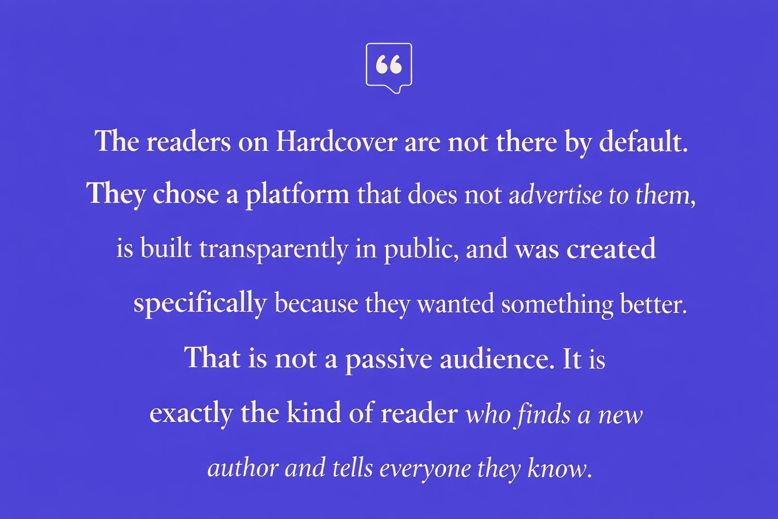 Early presence matters. Authors who establish themselves on Hardcover now can benefit from visibility that is far harder to secure after a platform reaches scale.